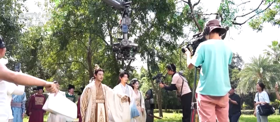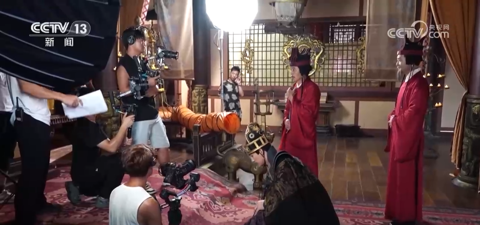 這幾天,位于浙江金華的橫店影視城最高氣溫超過35℃。各大片場里,短劇拍攝更是一片火熱。記者在橫店影視城華夏文化園景區(qū)內(nèi)看見,有兩部短劇正同時拍攝,劇組各占一塊地方,相隔幾百米左右,燈光、搖臂......各種設(shè)備應(yīng)有盡有,工作人員默契配合,拍攝井然有序。