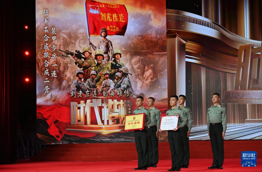 中央宣傳部在授予“時代楷?!狈Q號的決定中指出,“劉老莊連”是有靈魂、有本事、有血性、有品德的新時代革命軍人的優(yōu)秀代表,他們的先進事跡充分彰顯了人民軍隊堅定維護核心、堅決聽黨指揮的政治本色和血脈傳承,生動詮釋了全軍官兵不畏強敵、敢打必勝的精神品質(zhì),集中展現(xiàn)了新時代人民軍隊的好樣子、革命軍人的好樣子。希望廣大黨員干部特別是部隊官兵以“時代楷?!睘榘駱樱钊雽W習貫徹習近平新時代中國特色社會主義思想,深入貫徹習近平強軍思想,深刻領(lǐng)悟“兩個確立”的決定性意義,增強“四個意識”、堅定“四個自信”、做到“兩個維護”,貫徹軍委主席負責制,傳承和弘揚偉大抗戰(zhàn)精神,堅定理想信念、厚植家國情懷,為如期實現(xiàn)建軍一百年奮斗目標、加快把人民軍隊建成世界一流軍隊,為以中國式現(xiàn)代化全面推進強國建設(shè)、民族復(fù)興偉業(yè)而團結(jié)奮斗。