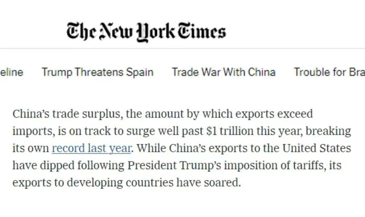 美國《紐約時(shí)報(bào)》的文章分析稱,強(qiáng)勁的出口和對新工廠的持續(xù)投資使中國經(jīng)濟(jì)在夏季保持穩(wěn)定增長。中國的出口投資以及用國產(chǎn)商品取代進(jìn)口的政策繼續(xù)推動著經(jīng)濟(jì)增長。與去年同期相比,商品貿(mào)易順差在過去三個(gè)月中增加了12.4%。中國的貿(mào)易順差今年有望超過1萬億美元,主要得益于中國對發(fā)展中國家的出口激增。