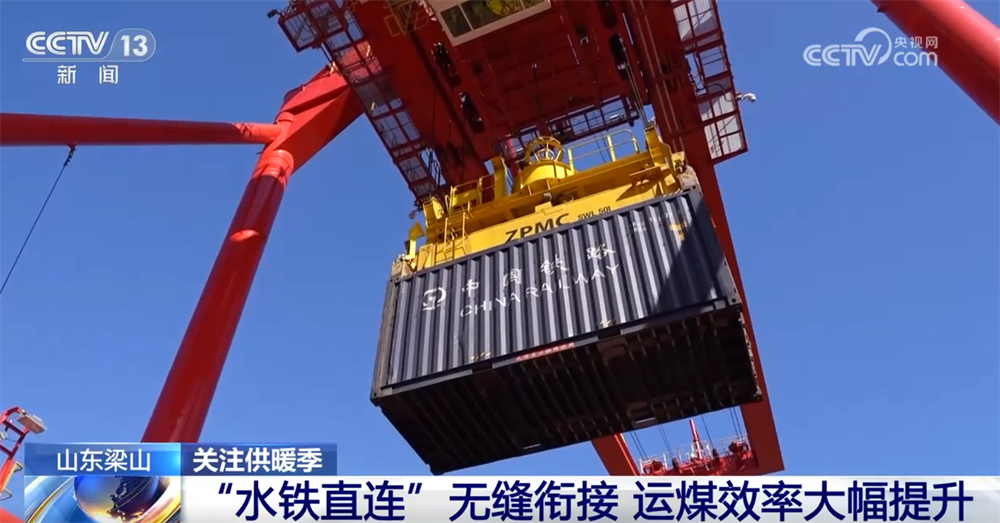在現(xiàn)場,大家可以看到大型起重機正在往船上裝集裝箱,這是今年港口新推出的一種“水鐵直連”的煤炭運轉(zhuǎn)模式,就是把集裝箱的煤通過鐵路運到這里,不再經(jīng)過卸煤和存儲的過程,而是通過精準的需求調(diào)度把集裝箱直接裝船,通過運河發(fā)往目的地。這種方式大幅縮短了煤炭運輸?shù)闹芷?,把整個周期從5天縮短到3天,也提升了港口能源保障的效率和能力。