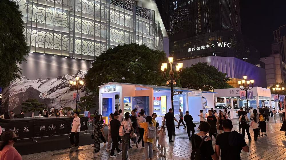 重慶解放碑商圈內,消費者在“國際優(yōu)品展”選購。新華社記者 李曉婷 攝