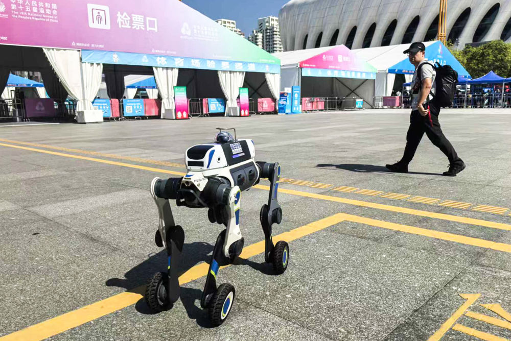 11月15日,深圳警方在場(chǎng)館附近使用“電子狼”警用巡邏機(jī)器人。