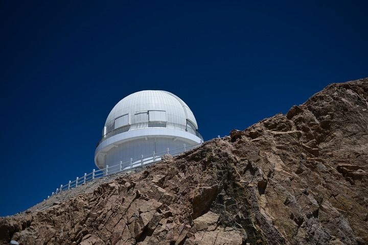 這是在青海省海西蒙古族藏族自治州茫崖市冷湖鎮(zhèn)賽什騰山拍攝的中國(guó)科學(xué)技術(shù)大學(xué)和中國(guó)科學(xué)院紫金山天文臺(tái)聯(lián)合研制的大視場(chǎng)光學(xué)成像望遠(yuǎn)鏡——墨子巡天望遠(yuǎn)鏡(2024年4月20日攝)。