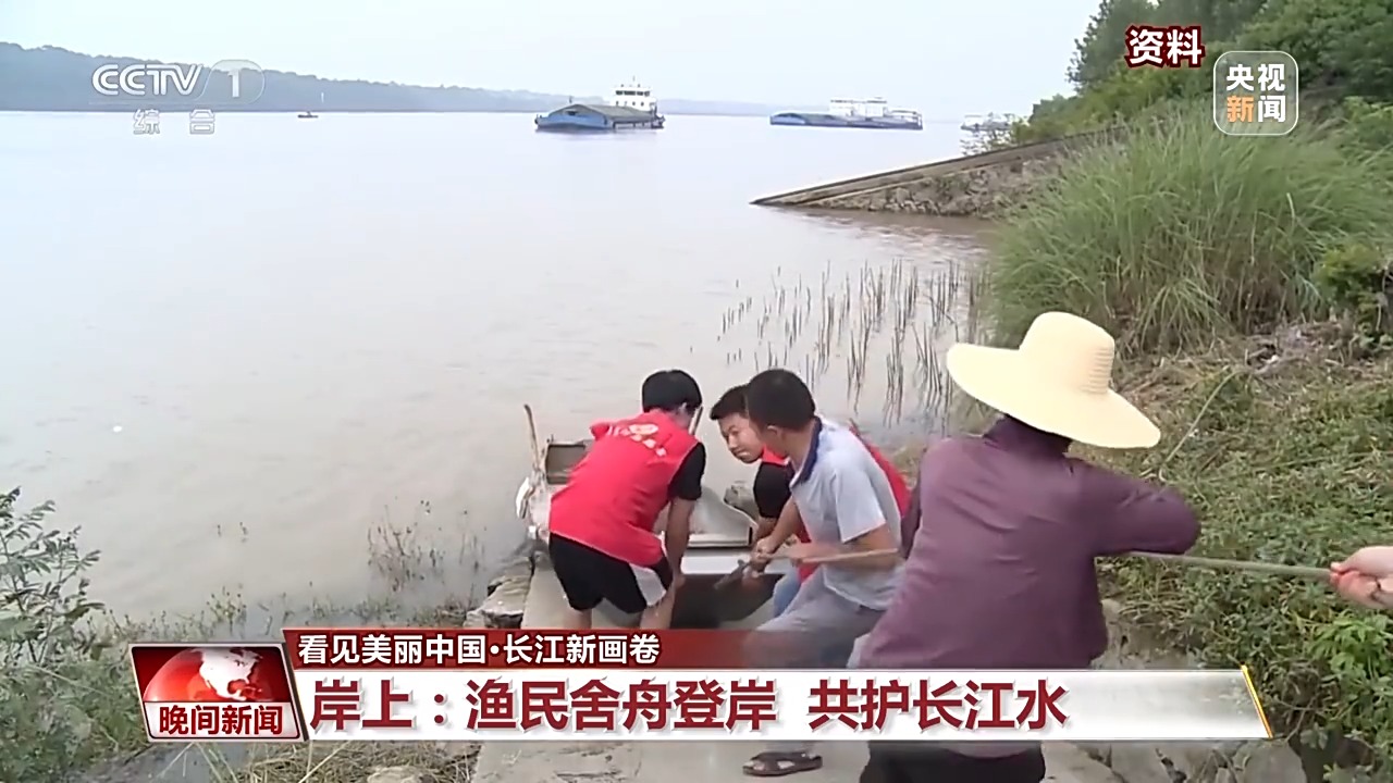 岸上:漁民舍舟登岸 共護(hù)長(zhǎng)江水