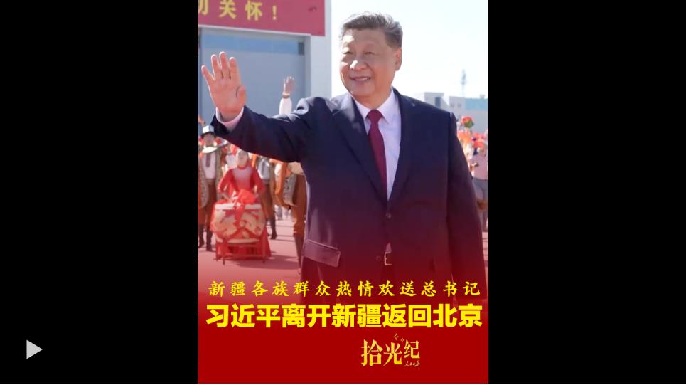 25日,習(xí)近平乘專機(jī)返回北京。烏魯木齊天山機(jī)場(chǎng)奏響別具特色的樂(lè)曲《我們?cè)谝黄稹?,各族群眾載歌載舞熱情歡送總書(shū)記。
