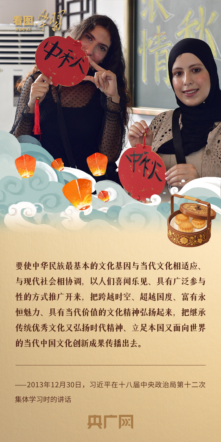 中秋節(jié)是我國四大傳統(tǒng)節(jié)日之一,承載著中華民族優(yōu)秀傳統(tǒng)文化底蘊(yùn),寄托著中國人濃濃的家國情懷和圓滿和諧的美好追求。習(xí)近平總書記曾指出,要“把歷經(jīng)滄桑留下的中華文明瑰寶呵護(hù)好、弘揚(yáng)好、發(fā)展好”。中秋佳節(jié),讓我們一起重溫總書記關(guān)于中華優(yōu)秀傳統(tǒng)文化的深刻闡釋、深情囑托,堅定文化自信,更好構(gòu)筑中國精神、中國價值、中國力量。