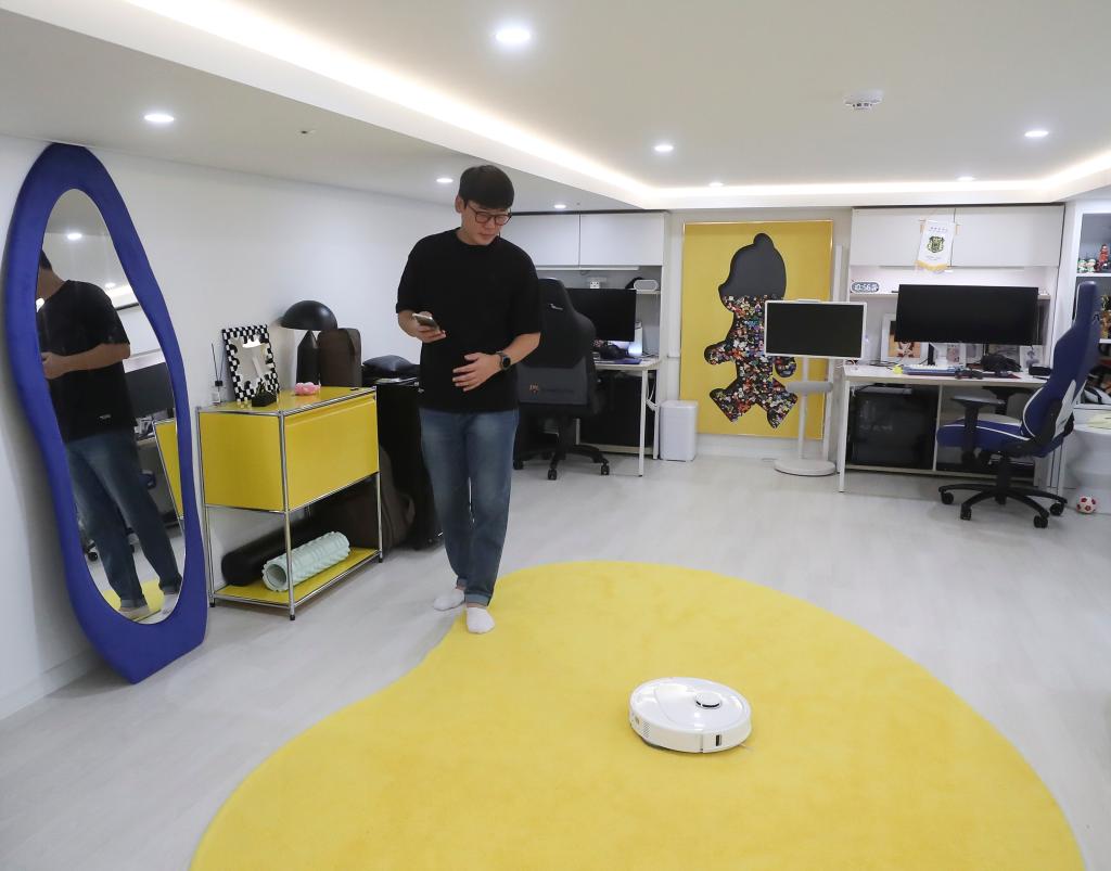 2025年10月13日,韓國(guó)消費(fèi)者在首爾的家中使用掃地機(jī)器人。新華社記者姚琪琳攝