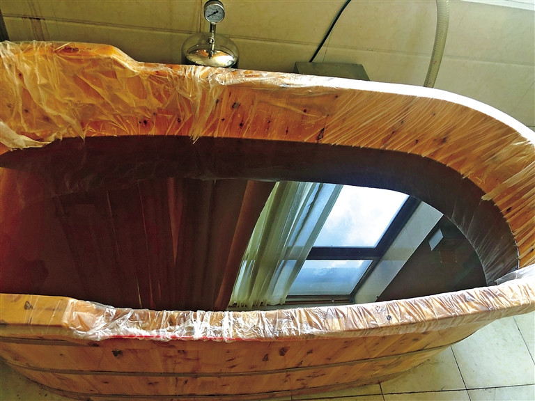 西藏自治區(qū)藏醫(yī)院藏醫(yī)藥浴中心工作人員正在更換一次性木桶套。