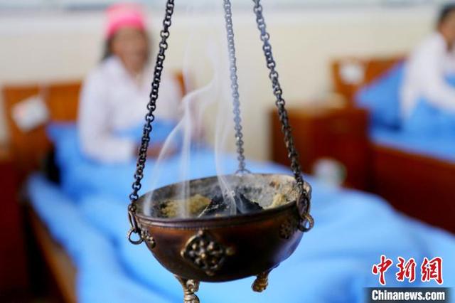 圖為藏醫(yī)熏藥療法?!「哒?攝