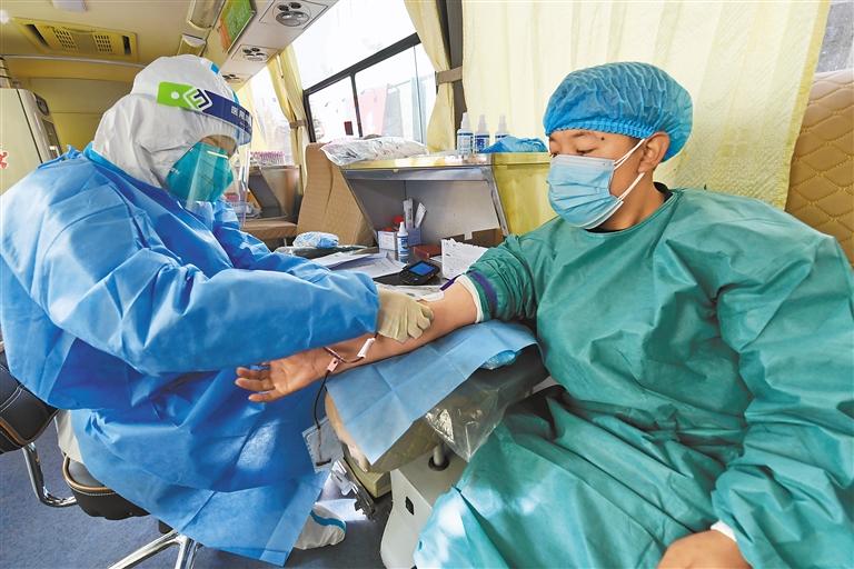 近日,西藏自治區(qū)無償獻(xiàn)血委員會向全區(qū)各級黨政機(jī)關(guān)、企事業(yè)單位、民間社會組織和社會各界愛心人士發(fā)出《致全區(qū)人民無償獻(xiàn)血倡議書》, 西藏各族各界干部群眾積極響應(yīng),踴躍參與無償獻(xiàn)血,奉獻(xiàn)愛心,傳遞正能量。 圖為醫(yī)護(hù)人員在采集血液。 記者 唐斌 攝