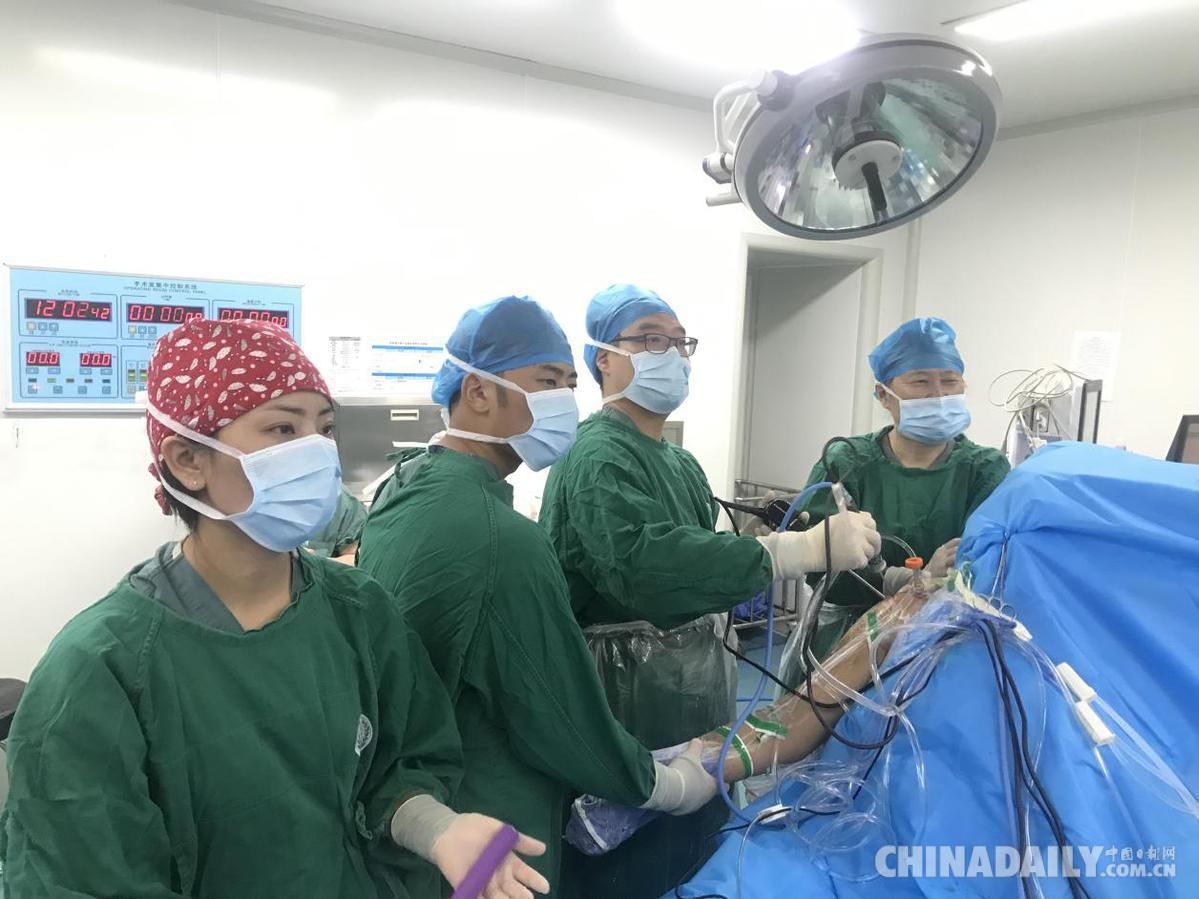 程序醫(yī)生和西藏自治區(qū)人民醫(yī)院醫(yī)生一道開展肩袖撕裂鏡下手術(shù)。中國日報達(dá)窮攝