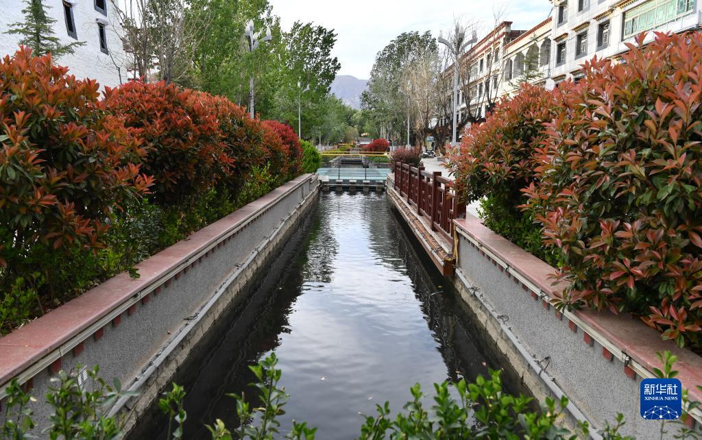 拉薩市崗廓路與江蘇大道交叉口附近的水系景觀(5月7日攝)。新華社記者 晉美多吉 攝