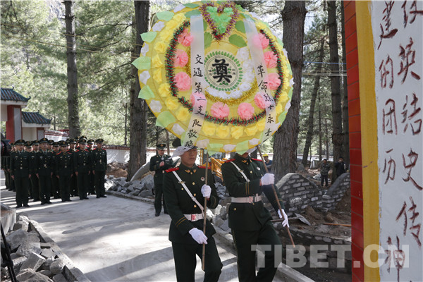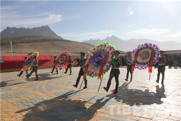 圖為駐阿里官兵向革命烈士敬獻(xiàn)花圈。攝影:李海峰