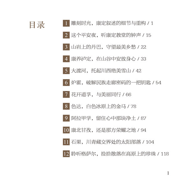 作者的作品和他的人一樣,始終接著地氣,一步一個腳印,一步一滴汗水,心隨意動,意隨心走。他用那特有的視界和感受方式,把康巴的每一處風(fēng)景都盡收眼底,康定情歌、川西梨花、丹巴碉樓、茶馬古道、嵐安古寨、貢嘎之冠、霍爾文化、道孚油菜、康北糧倉、唐蕃古道、松茸之鄉(xiāng)、香格里拉、云上理塘、川藏古道……文字樸實無華,語言簡練精巧,直接地體現(xiàn)出他的生命追求、人格品位和審美理想。同時,讓我聞到了久別的泥土香,感受到清新的鄉(xiāng)土情。