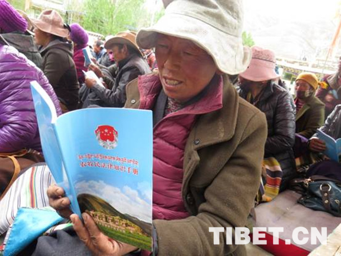 中國西藏網(wǎng)訊 “這種文藝活動加普法宣傳好?。⊥ㄟ^這些宣傳活動,我們老百姓對國家的利民惠民政策和相關(guān)法律法規(guī)有了更深的認識?!币晃皇掷锬弥稇椃ā沸麄髻Y料的阿佳啦對記者說。