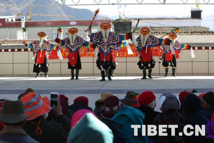 臺上,藏戲表演、男女聲獨唱、舞蹈等群眾喜聞樂見的節(jié)目讓演員們表演得淋漓盡致,精彩的節(jié)目使得臺下觀眾發(fā)出陣陣歡笑,整個院子響起了經(jīng)久不息的掌聲。