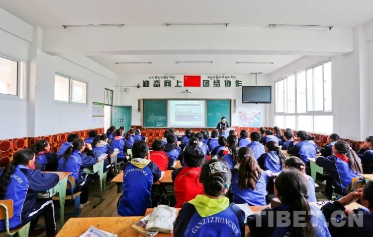 圖為甘孜縣民族中學教師在進行多媒體教學