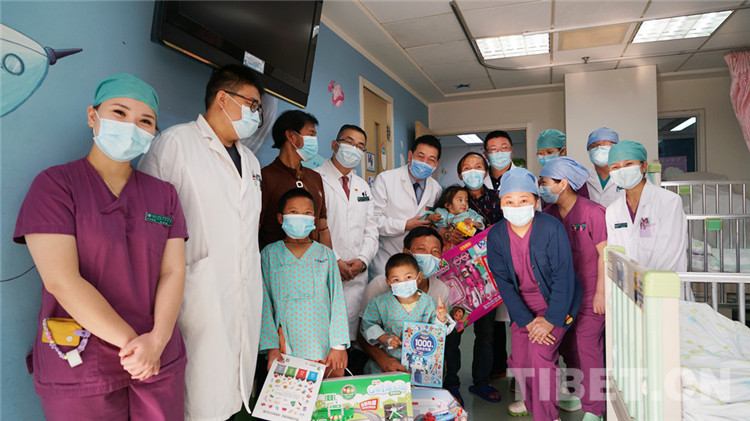 “扎西德勒!”院長(zhǎng)倪鑫來到病房,看望“同心·共鑄中國(guó)心”大型公益項(xiàng)目組織救助的3名來自四川省甘孜藏族自治州的先心病小患者,希望他們?cè)缛栈謴?fù)健康,開啟人生的“心”旅程。三張帶著“高原紅”的小臉上樂開了花。