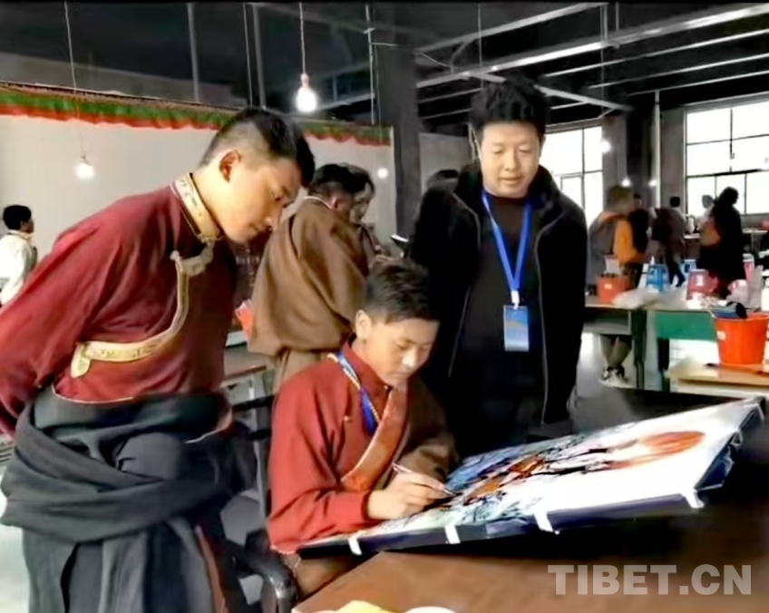 圖為朗杰參加唐卡繪畫技藝市民公開傳習(xí)活動(dòng)