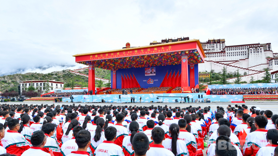 圖為西藏自治區(qū)成立60周年慶祝大會(huì)現(xiàn)場(chǎng) 攝影:趙振宇