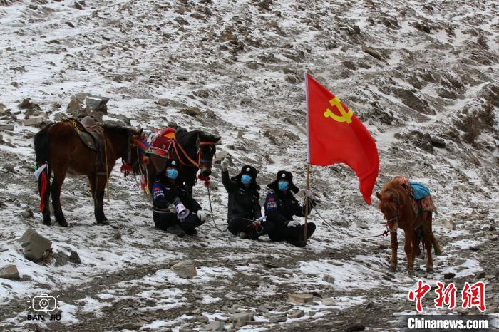 在工作中,馬背巡邏隊也發(fā)揮了物資運輸隊的作用,每當經(jīng)過一戶牧戶家時,巡邏隊隊員都會向牧民們贈送口罩、發(fā)放藏漢雙語宣傳資料。