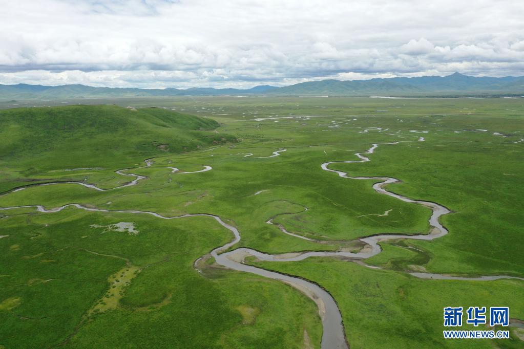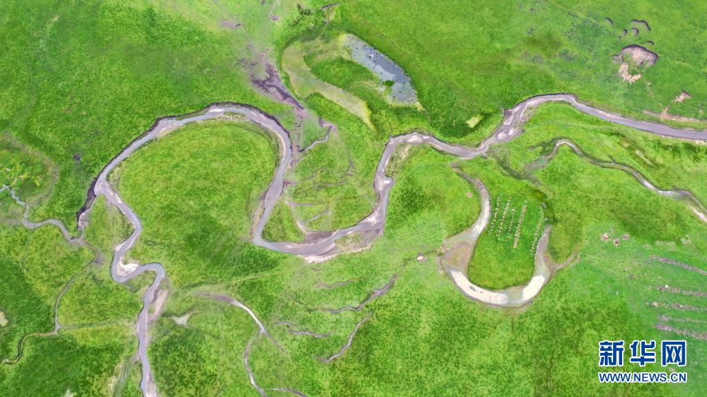 這是7月15日拍攝的瑪曲縣阿萬倉濕地(無人機照片)。新華社記者 文靜 攝