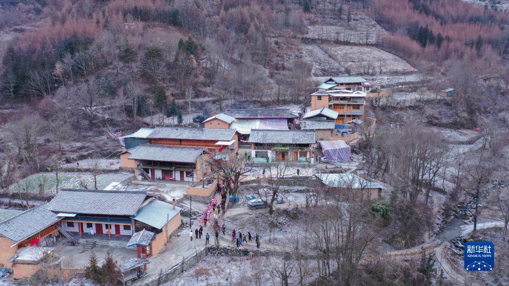 這是1月13日拍攝的隴南市文縣鐵樓藏族鄉(xiāng)寨科橋村(無人機照片)。新華社記者 郎兵兵 攝