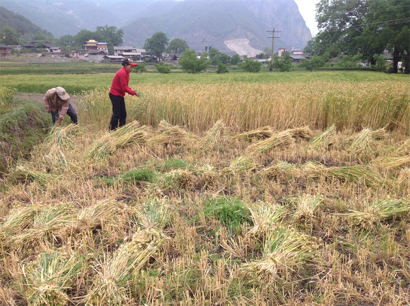 近日,維西縣塔城鎮(zhèn)其宗村村民忙著收割稻谷。