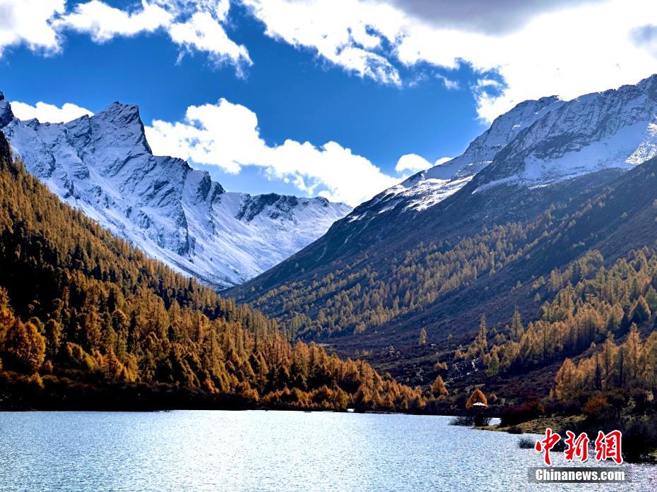 深秋時(shí)節(jié),四川省阿壩州小金縣瑪嘉溝迎來一年中最美季節(jié),雪山、冰川、海子、針葉林、原始森林等在藍(lán)天白云下變得色彩斑斕,層林盡染,已是一幅半山彩林半山雪的壯觀景象。陳邦亮 攝