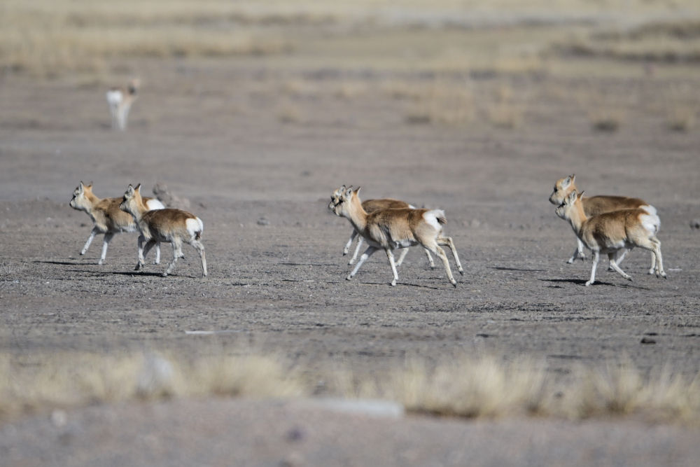 這是1月24日在青海省海北藏族自治州剛察縣哈爾蓋鎮(zhèn)境內(nèi)的草原上拍攝的普氏原羚。新華社記者 張龍 攝