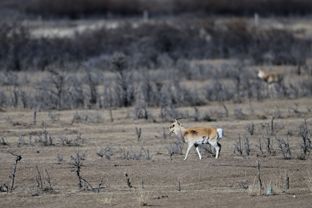這是1月24日在青海省海北藏族自治州剛察縣哈爾蓋鎮(zhèn)境內(nèi)的草原上拍攝的普氏原羚。新華社記者 耿輝凰 攝
