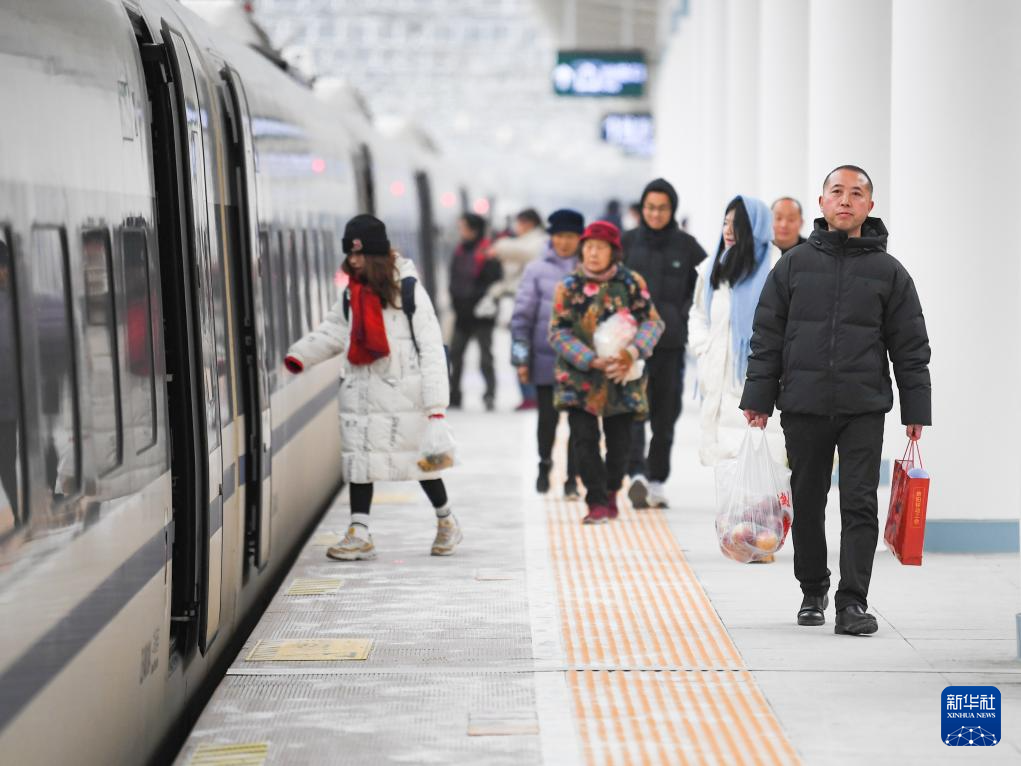 1月28日,在川青鐵路茂縣站,旅客帶著購買的蘋果準(zhǔn)備登車。新華社記者 王曦 攝