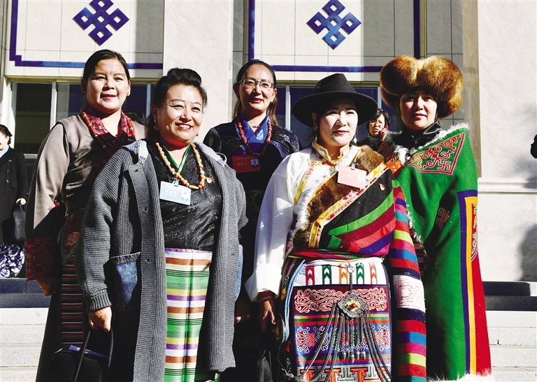 身著民族服飾的人大代表步入閉幕會場。