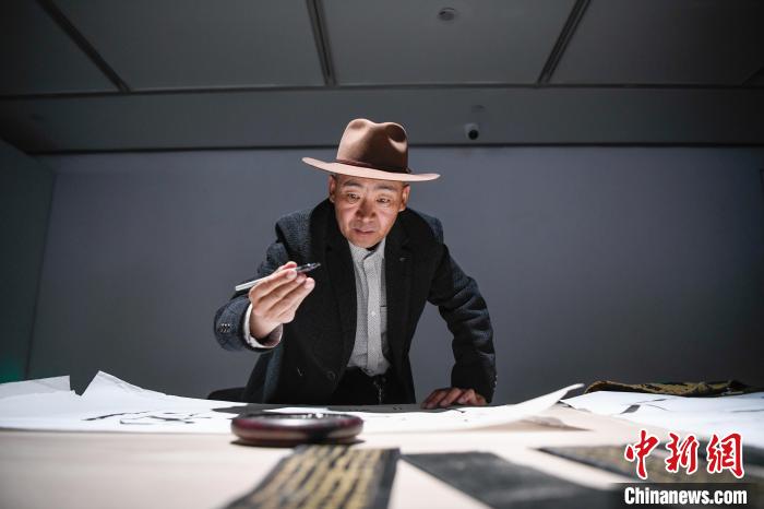 圖為展覽現(xiàn)場(chǎng),藏文書法創(chuàng)作。中新社記者 貢嘎來(lái)松 攝