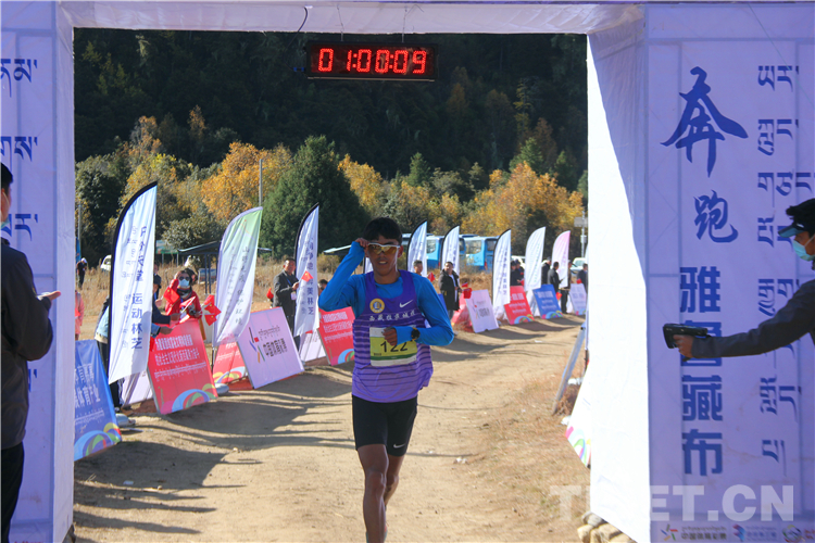 在雪山的映襯下,參賽選手們身穿各色服裝,伴隨著周邊村民的加油助威,一路抵達(dá)終點(diǎn)。最終,來自西藏自治區(qū)山南市的扎巴以59分02秒的成績(jī)獲得男子組第一名,邊片以1小時(shí)16分12秒的成績(jī)奪得女子組第一名。