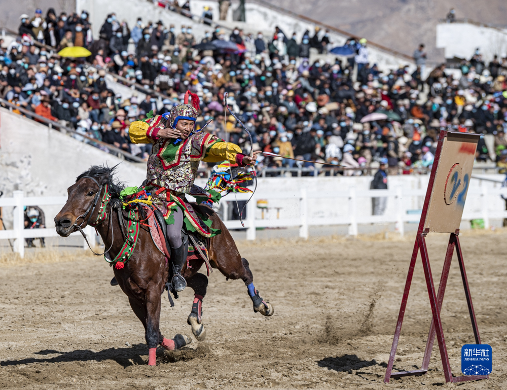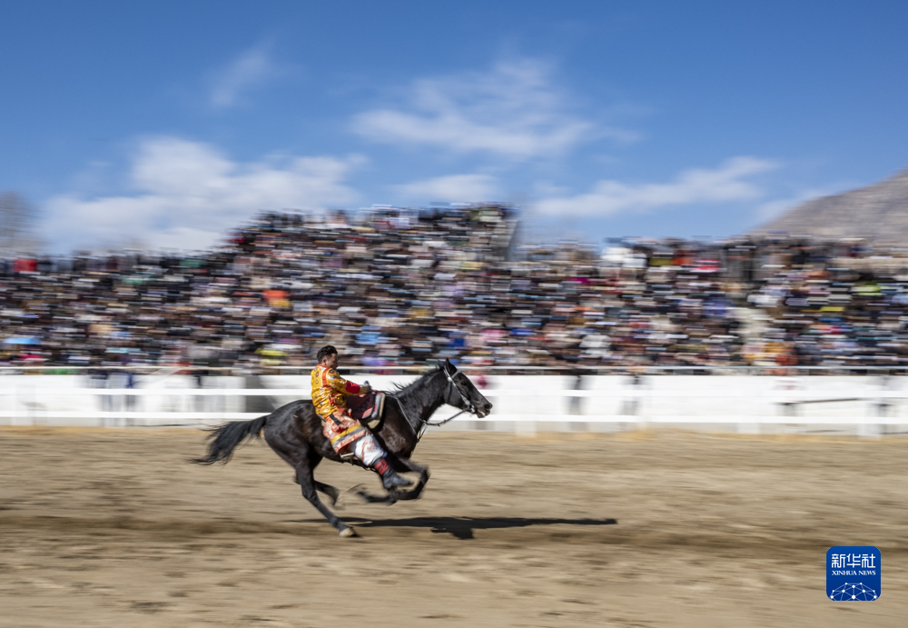 每年藏歷新年初三,在拉薩賽馬場舉辦馬術表演已成為當?shù)貞c祝新年的傳統(tǒng),深受廣大群眾喜愛。騎手們英姿颯爽,為觀眾們帶來騎馬拾哈達、騎馬射箭等精彩表演。