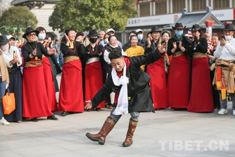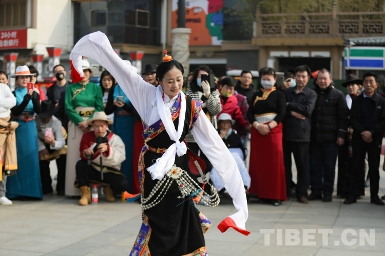 中國西藏網(wǎng)訊 3月21日,由新的社會階層人士服務團三分團主辦、北京藏地神韻非物質(zhì)文化傳播發(fā)展公司承辦的傳統(tǒng)藏舞公益推廣活動在西安舉辦。多位藏舞傳承人與藏舞愛好者齊聚西安大唐西市進行公益推廣交流。鍋莊、伊舞,《歡迎你們到來》《舞動青春年華》《吉祥的哈達》……一曲接著一曲,舞出了藏族舞蹈的無限魅力?。ㄖ袊鞑鼐W(wǎng) 記者/呂靜 姚浩然)