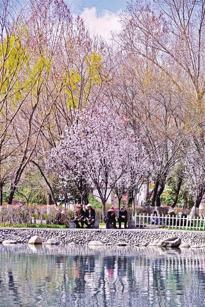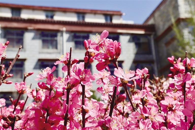 那么,去哪里查收這份“春日限定大禮包”呢?最近幾天,記者的朋友圈都被帕崩崗的美景霸屏了,一波又一波的朋友到這里打卡。除了去帕崩崗賞桃花,更不容錯過的一定是拉薩大街小巷以及公園中驚鴻一瞥的美景。宗角祿康公園植被繁茂、古樹較多,一到春季,玫粉色的榆葉梅綻放枝頭,層層花瓣在陽光的照耀下嬌俏動人,一樹粉色花朵倒映在幽綠的湖水中,盡顯詩意。此外,緊鄰羅布林卡的羅堆東路也有意想不到的美景,每到這個(gè)季節(jié),紅葉李便會沿路盛開,淡粉色的花瓣搭配深紅色的花蕊,甚是好看。金珠西路沿途的景色也令人耳目一新,淡粉色的花朵肆意綻放,等紅燈時(shí)的心情因這些花朵變得不再焦灼。