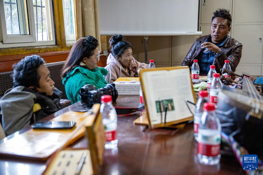 西藏拓崗文化傳播有限公司主播邊桑在直播銷售西藏傳統(tǒng)樂器扎念琴(11月10日攝)。新華社記者 姜帆 攝 ??