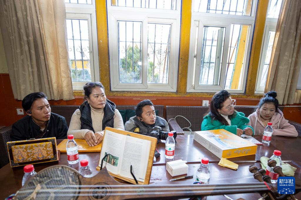 西藏拓崗文化傳播有限公司負(fù)責(zé)人覺列(右一)在直播前與直播團(tuán)隊(duì)討論直播方案(11月10日攝)。新華社記者 姜帆 攝 ??