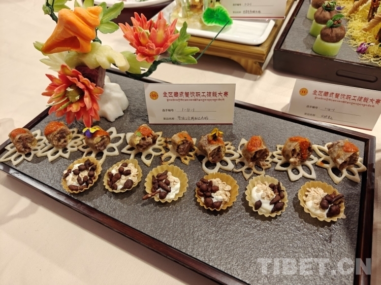 獨具藏民族特色和西藏本土特點的藏式烹調(diào)比賽現(xiàn)場,參賽選手們分三輪進行角逐,每位參賽選手要在規(guī)定時間內(nèi)獨立完成2道使用藏式烹飪手法或西藏特色食材制作的菜品,1道指定菜品和1道自選菜品。