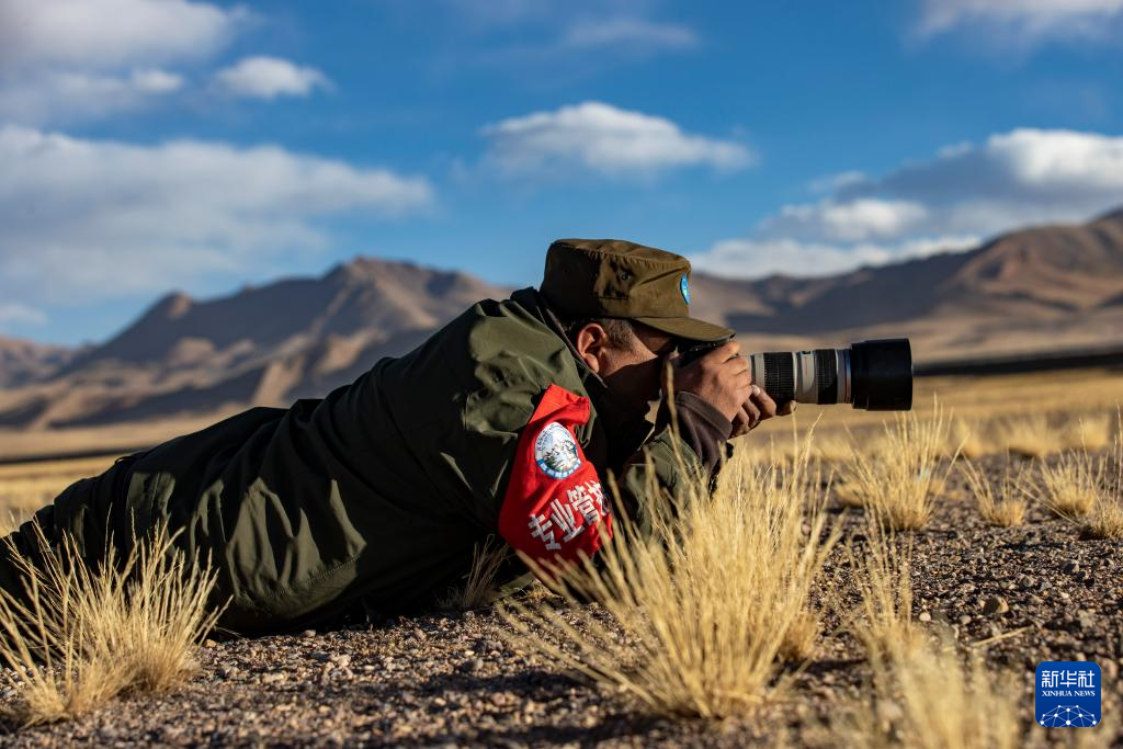 格桑倫珠在巡護(hù)途中拍攝野生動(dòng)物(12月21日攝)。新華社記者 姜帆 攝