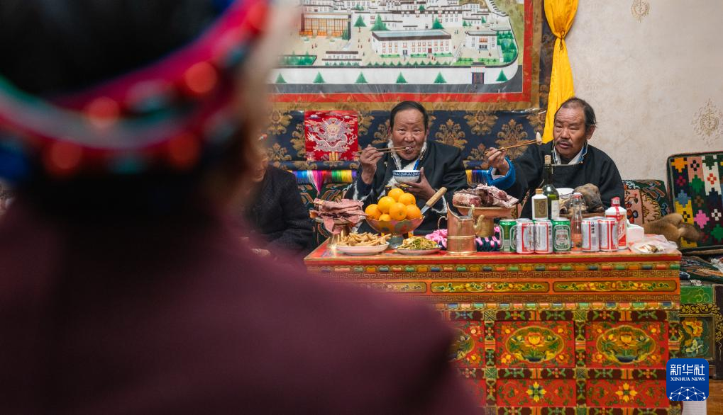 在日喀則市桑珠孜區(qū)洛瑪彩林社區(qū),59歲的巴桑普尺掌勺家里的“古突”宴。和面、揉面、煮面,火爐上一鍋牦牛肉湯熱氣騰騰。巴桑普尺高興地說:“今年是第一次在新房里過年,很開心?!?/p>