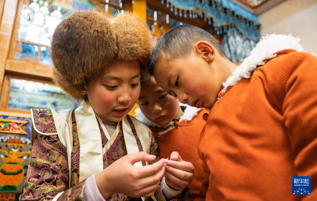 巴桑普尺家的孩子在查看“古突”里包裹的字條“餡兒”(1月10日攝)。新華社發(fā)(丁增尼達(dá) 攝) ??