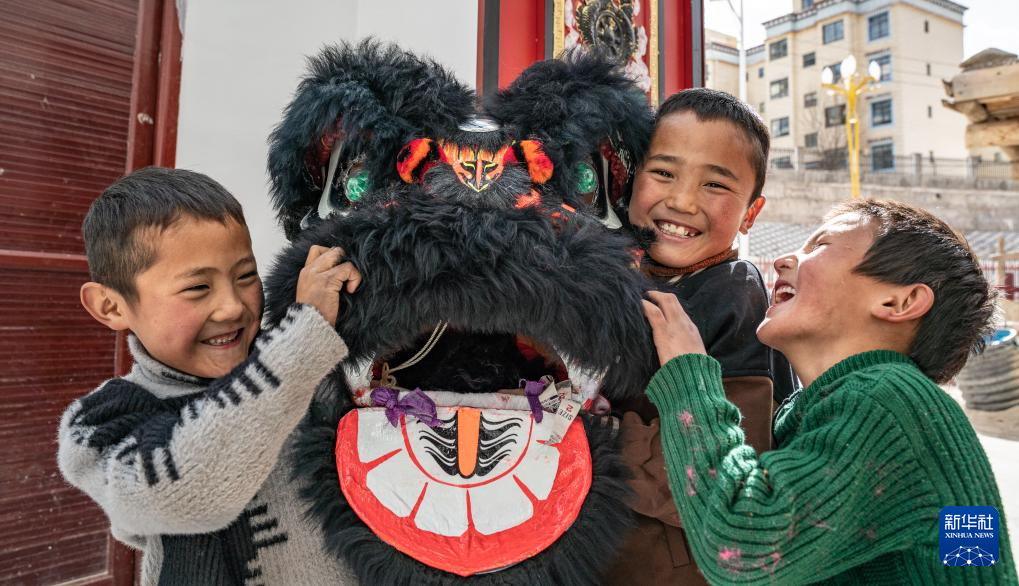 ?在西藏昌都市洛隆縣碩督鎮(zhèn)碩督村,孩子們手捧獅子舞道具玩耍(1月19日攝)。新華社記者 丁增尼達 攝