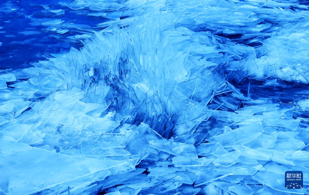 瑪旁雍錯(cuò)湖面上的冰像碎玻璃一樣透亮(1月29日攝)。新華社記者 關(guān)明輝 攝 ??