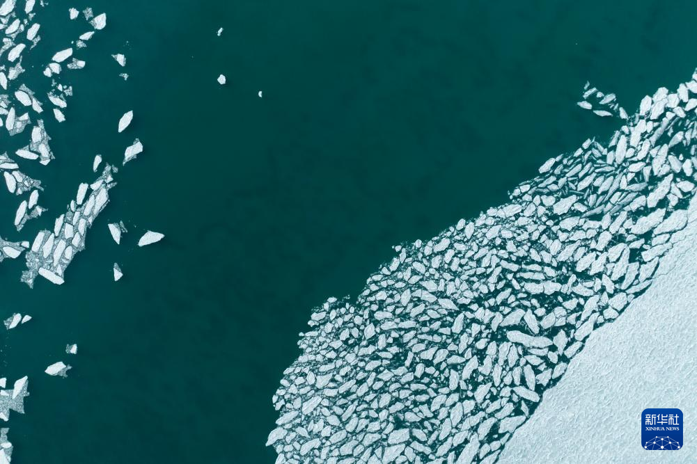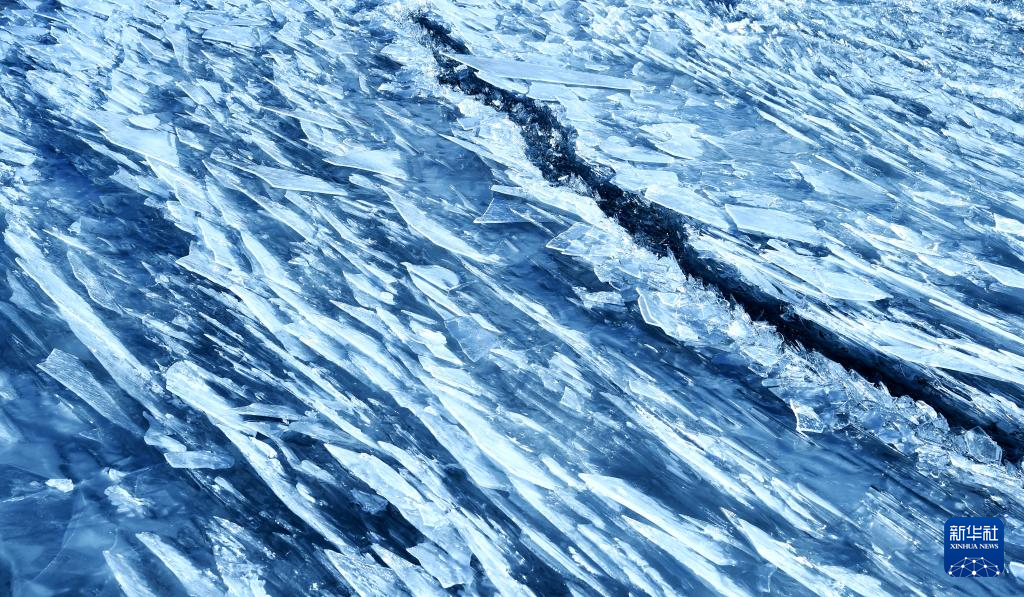 瑪旁雍錯(cuò)湖面上的冰堆積在一起,呈現(xiàn)出各式各樣的造型(1月29日攝,無人機(jī)照片)。新華社發(fā)(旦增努布攝) ??