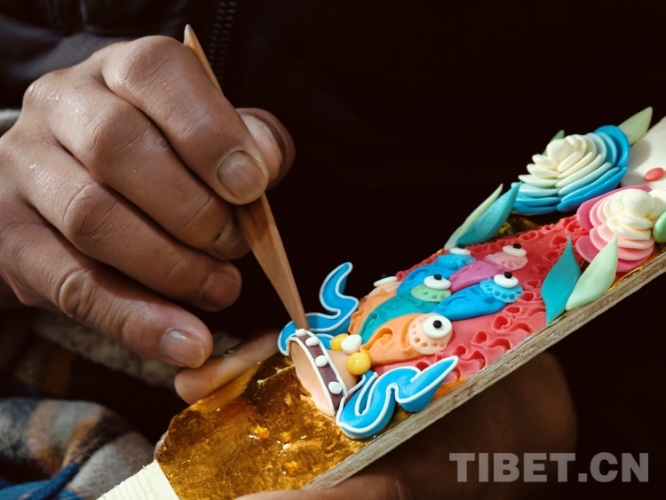 酥油花在藏語中稱為“孜扎”,是藏歷新年藏族家庭中必備的年貨之一。丹增朗杰每天和爸爸、大哥一起從早上8點(diǎn)左右開始捏制,一直持續(xù)到深夜24時許,按圖案復(fù)雜程度,一天可以捏制近7到10余對酥油花。[詳細(xì)]