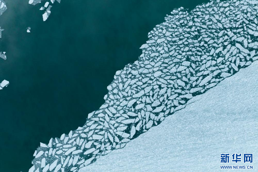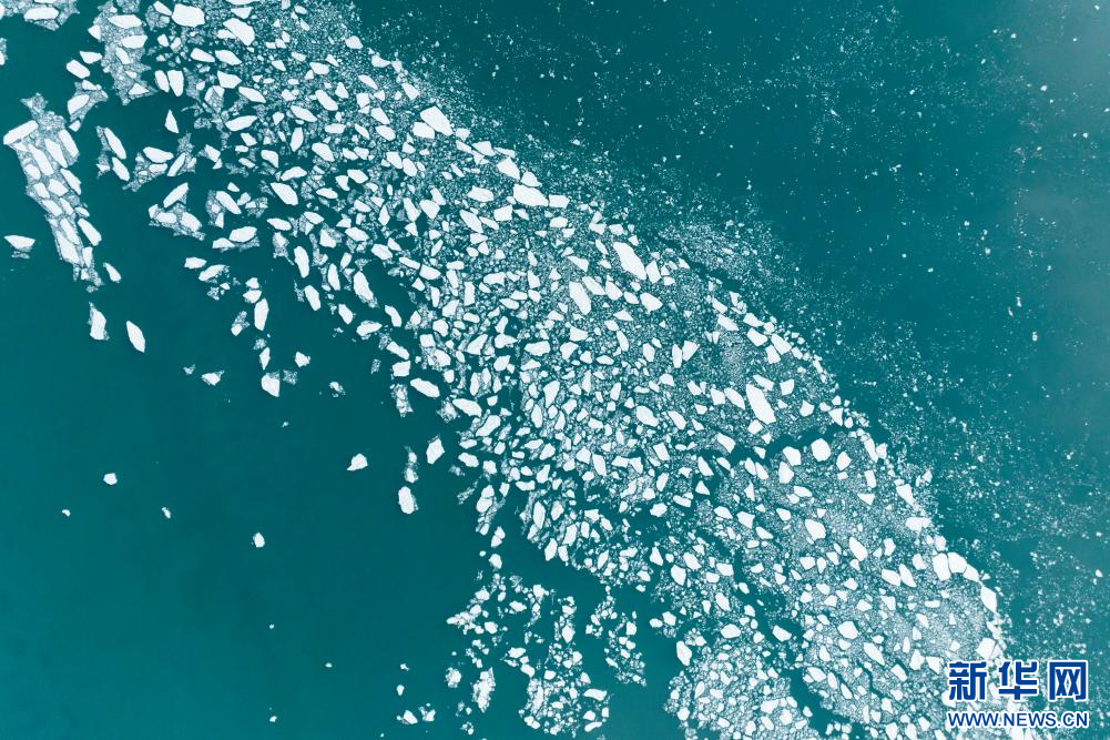 1月29日拍攝的瑪旁雍錯(cuò)湖面上的冰堆積在一起,呈現(xiàn)出各式各樣的造型(無人機(jī)照片)。新華網(wǎng) 旦增努布 攝
