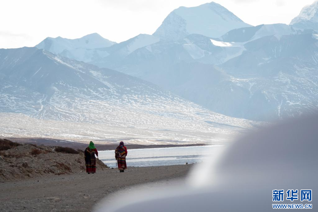 1月29日,瑪旁雍錯(cuò)湖邊轉(zhuǎn)湖的群眾。新華網(wǎng) 旦增努布 攝